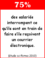 Bien sûr, personne n’écoute, parce que les études ont montré que le courrier électronique « à intervalle de rafraîchissement variable » est essentiellement un distributeur automatique pour votre cerveau. Mais passer un mois à distance, en vérifiant mon courrier électronique seulement une fois par semaine, m’a montré combien peu de messages exigent vraiment une réponse immédiate. En fait, aucun. Une attente de 90 minutes ne tuera personne et vous permettra d’accomplir quelque chose de substantiel pendant votre journée de travail.