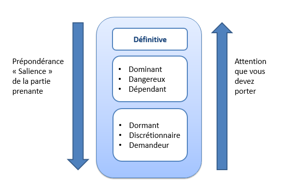 Selon Mitchell & al, il faut, avant tout, identifier les parties prenantes prépondérantes (« salient »), c’est-à-dire toutes celles qui comptent dans les projets.