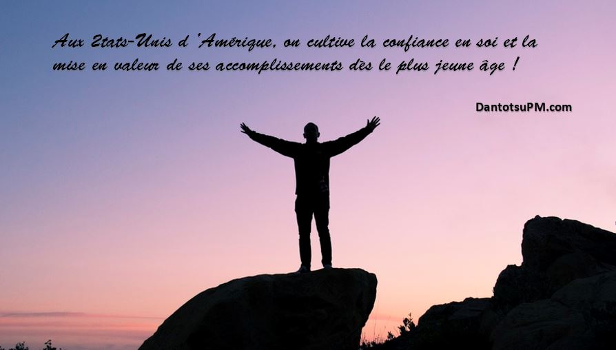 La confiance en soi est une qualité clé aux États-Unis. On célèbre les succès depuis le plus jeune âge. Tout au long du parcours scolaire, les accomplissements des petits Américains sont fêtés par des “awards ceremonies” à la fin de chaque année scolaire. Plus tard, les programmes du genre “Employee of the Month” sont légion. On cultive la confiance en soi et la mise en valeur de ses accomplissements.