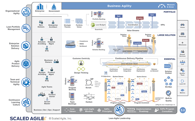 Elle comprend une explication des cadences, des cérémonies et des processus de Scrum et de SAFe applicables aux équipes, aux programmes, aux grandes solutions et aux portefeuilles de projets.