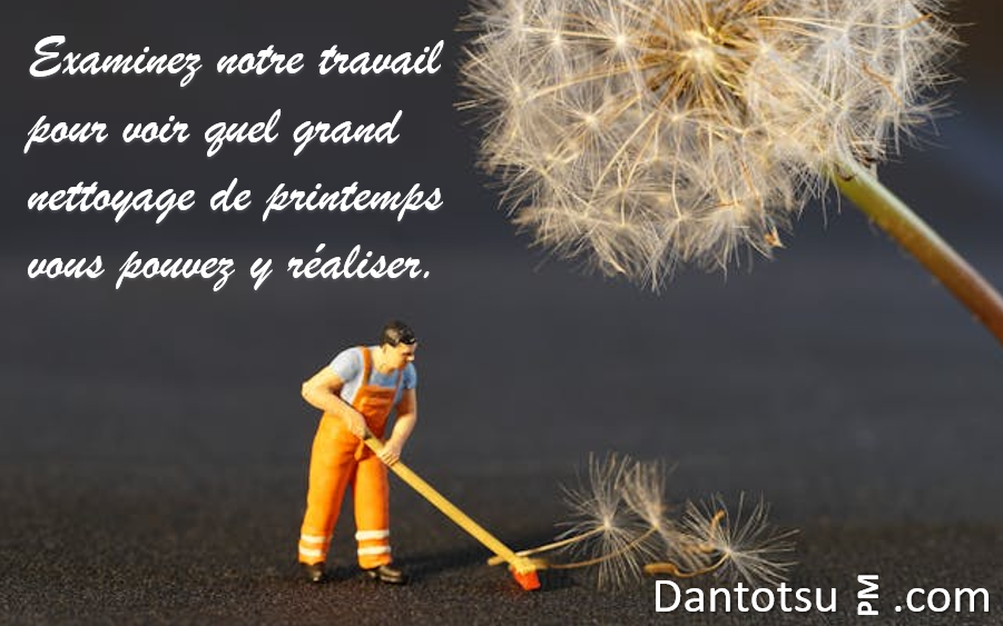 Alors que vous vous lancez vaillamment dans le grand nettoyage de la maison, du sol au plafond, rideaux, couettes, tapis et même garage et cave… vous décidez cette année de l’appliquer également dans votre travail et votre projet.