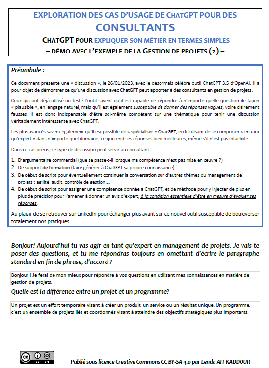 Suite à son intervention au PMI Côte d’Ivoire Chapter, Anne-Emmanuelle a été inspirée et a décidé de se plonger entièrement dans la création d’une ressource exhaustive pour les gestionnaires de projet désireux d’exploiter pleinement ChatGPT.
