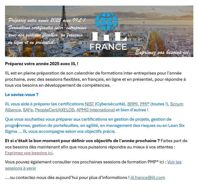 Formation aux nouvelles solutions ou nouveaux processus.
